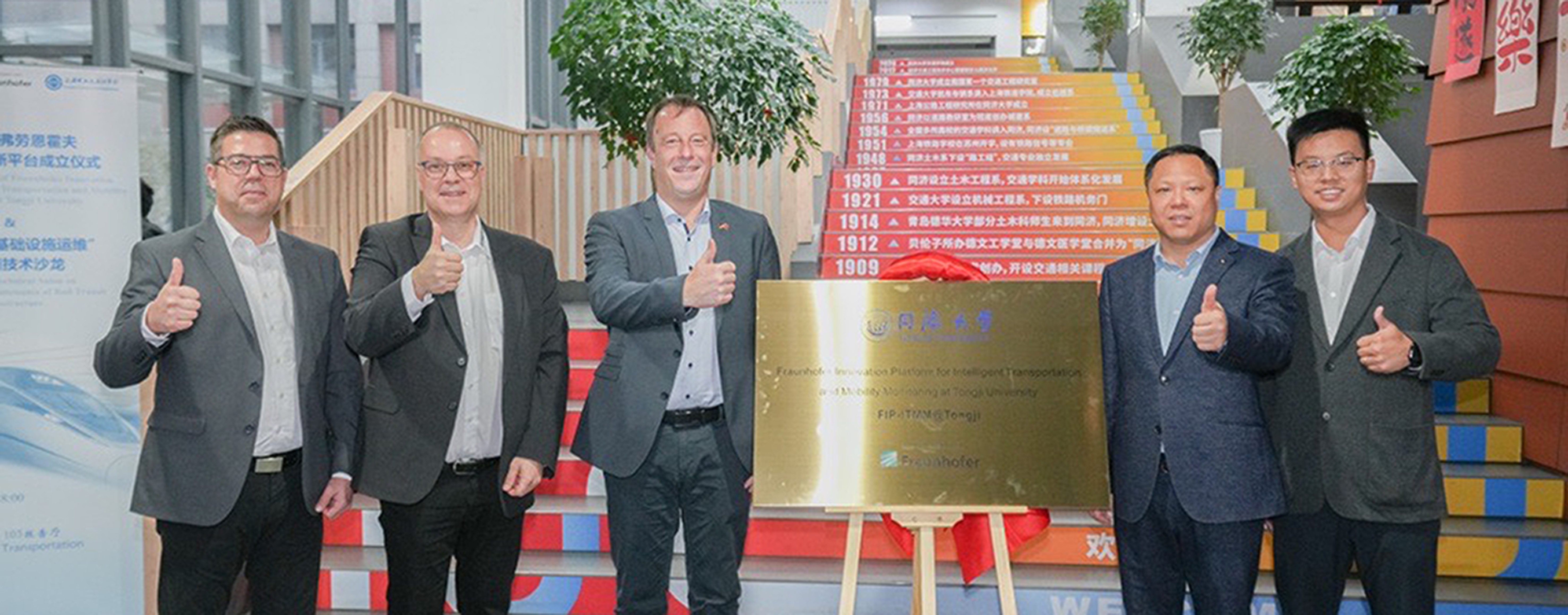 Am 1. Oktober 2025 fiel der Startschuss für die »Fraunhofer Innovation Platform for Intelligent Transportation and Mobility Monitoring FIP-ITMM@TONGJI«. Die Kooperation zwischen dem Fraunhofer-Institut für Zerstörungsfreie Prüfverfahren IZFP und der Tongji-Universität in Shanghai, China, entwickelt ein Leistungsangebot für Smart Predictive Maintenance und intelligente Monitoringsysteme im Hochgeschwindigkeitsverkehr auf der Schiene. Die Zusammenarbeit ermöglicht dem Fraunhofer IZFP Zugang zum weltweit größten Hochgeschwindigkeitsnetz und zur Versuchsinfrastruktur an der Partnerorganisation und hat eine Laufzeit von fünf Jahren. Lesen Sie mehr...